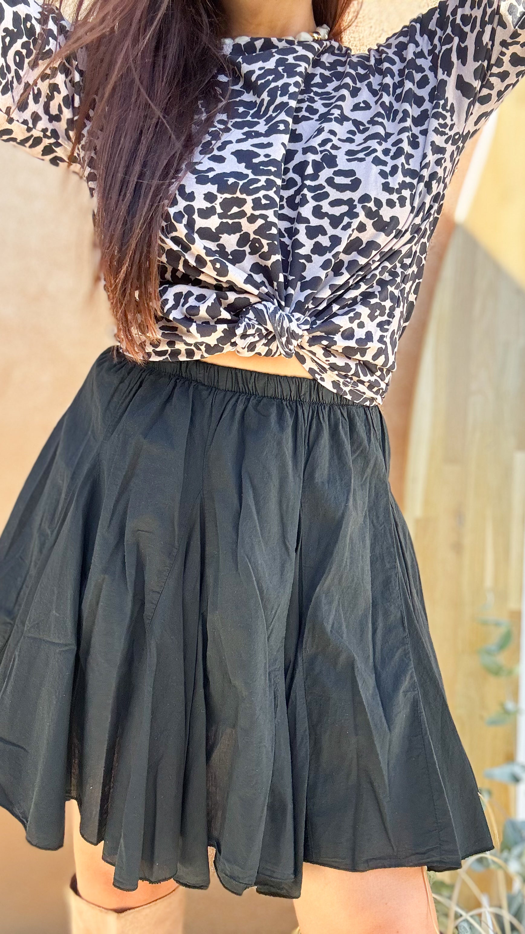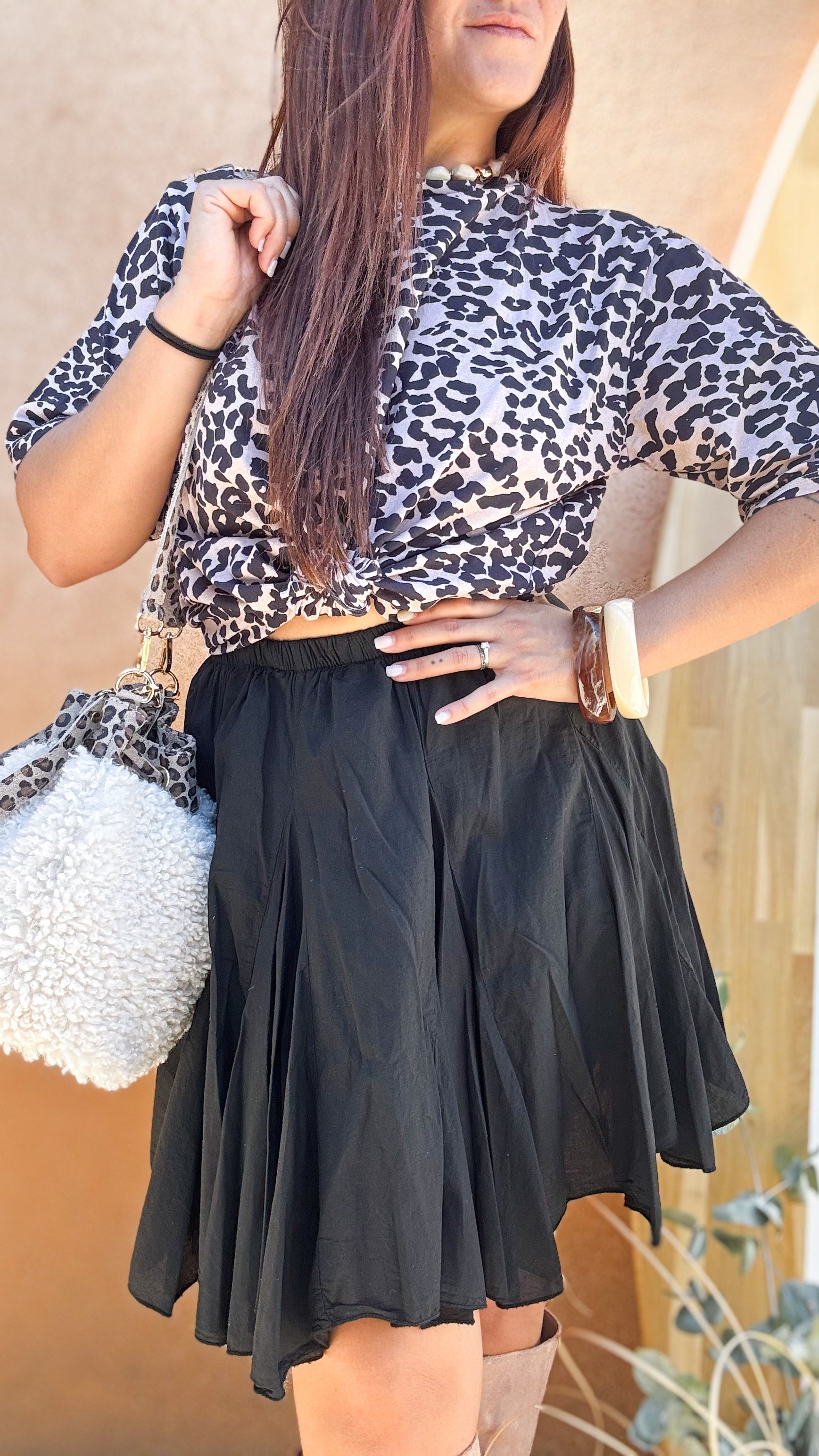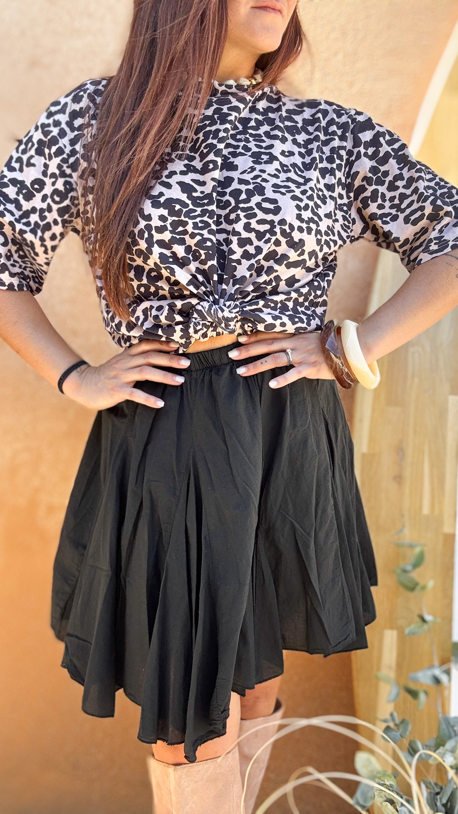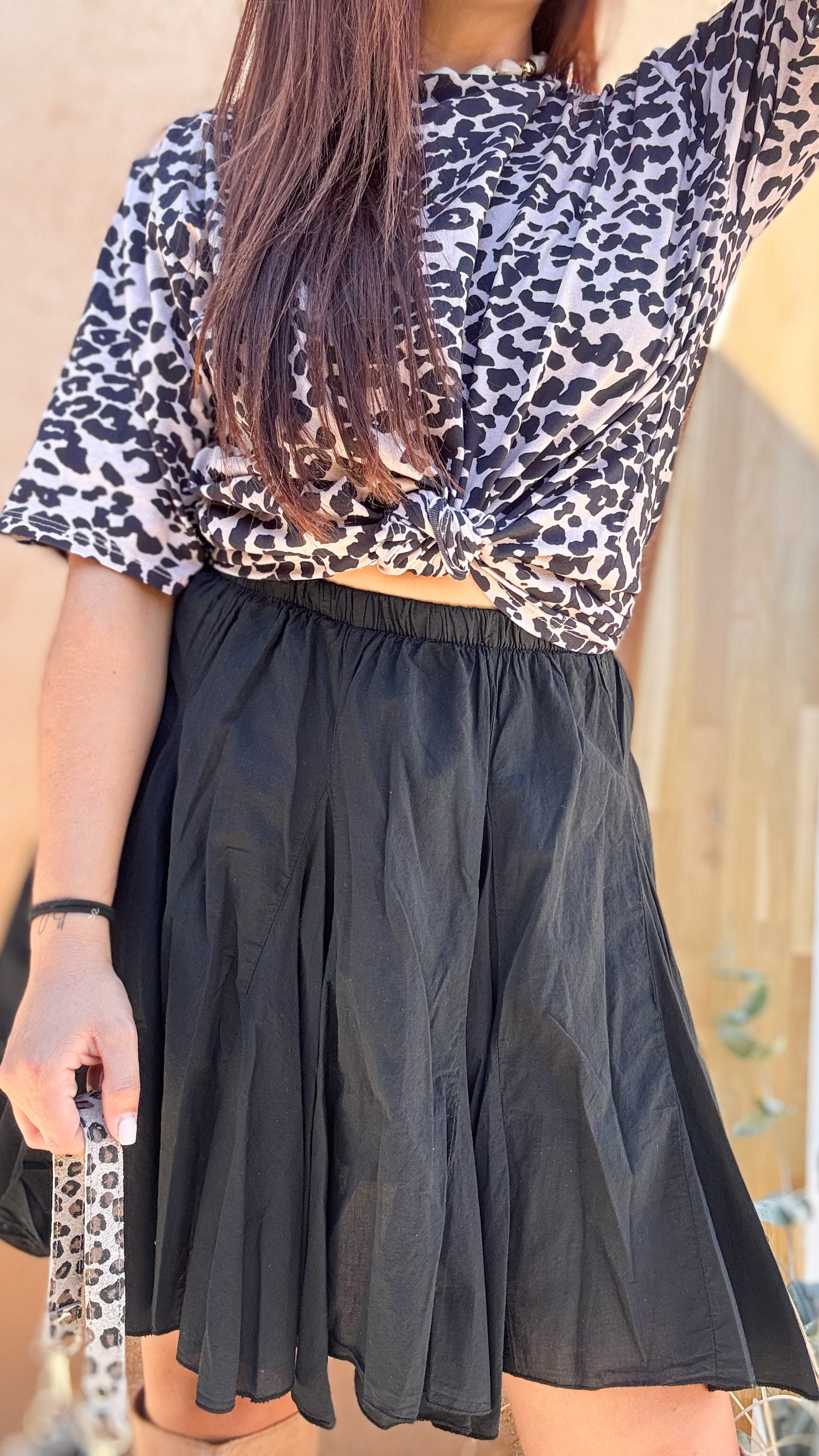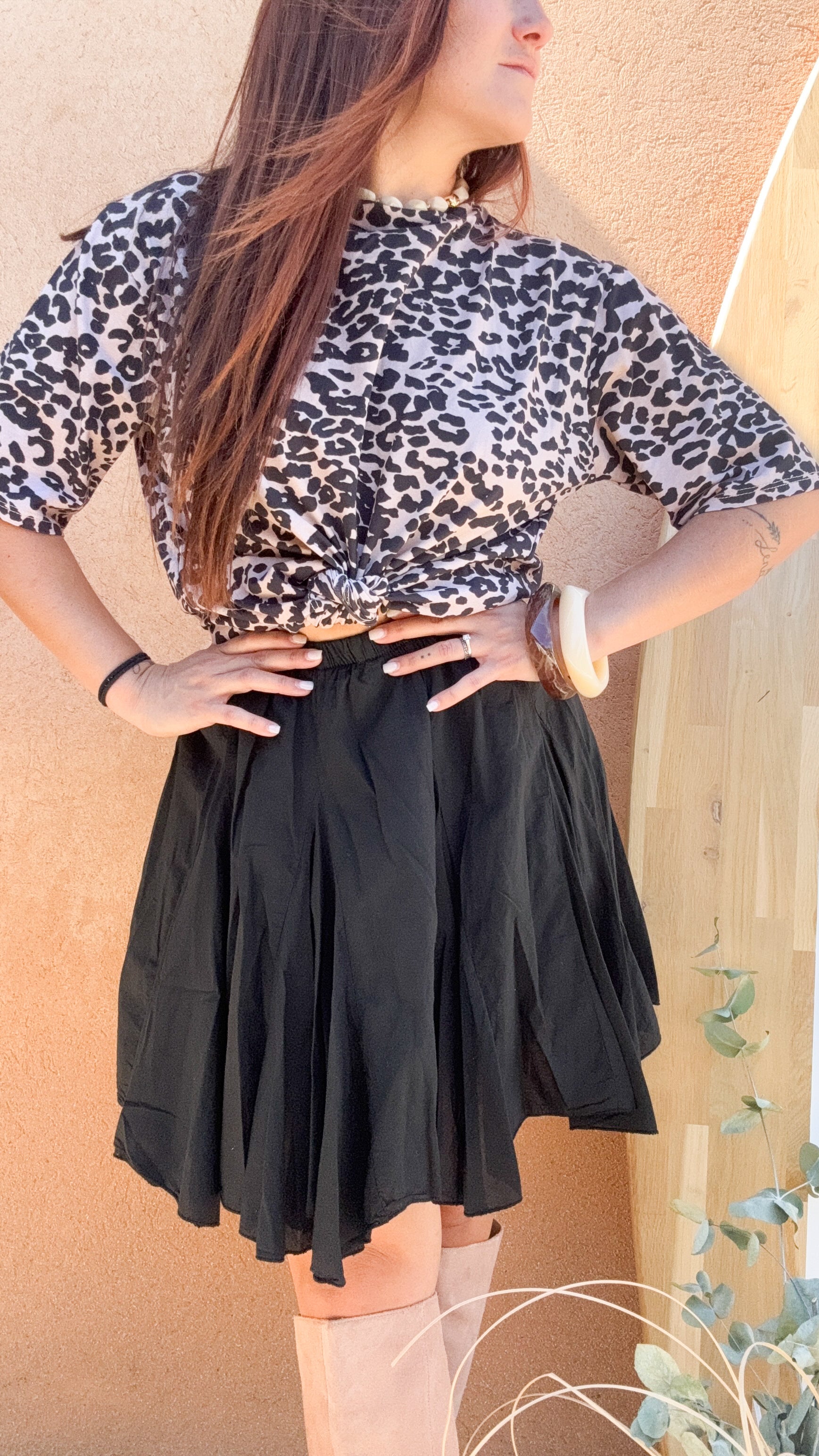 Cette jupe évasée noire est l’essentiel chic et lumineux de ta garde-robe ! Sa coupe fluide met en valeur toutes les silhouettes, tandis que son tombé élégant apporte du mouvement à chacun de tes pas. Facile à assortir, elle se porte en journée avec des baskets et un pull oversize, ou en soirée avec un top satiné et des talons. On l’adore pour son côté intemporel, son allure raffinée et son esprit solaire qui illumine même les looks les plus simples.
