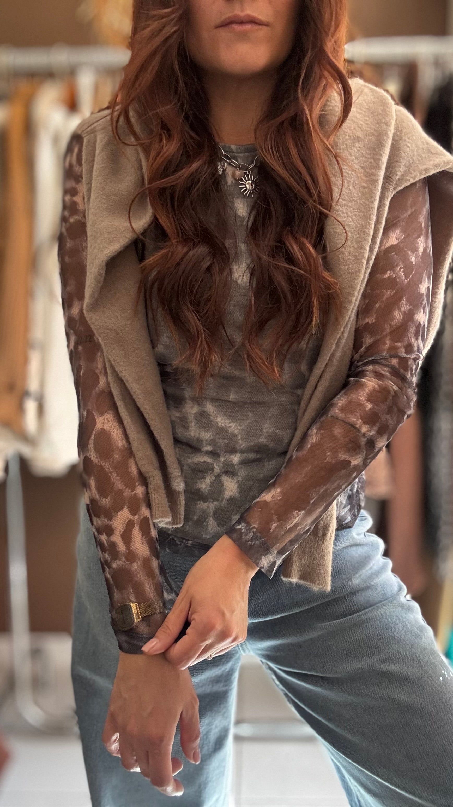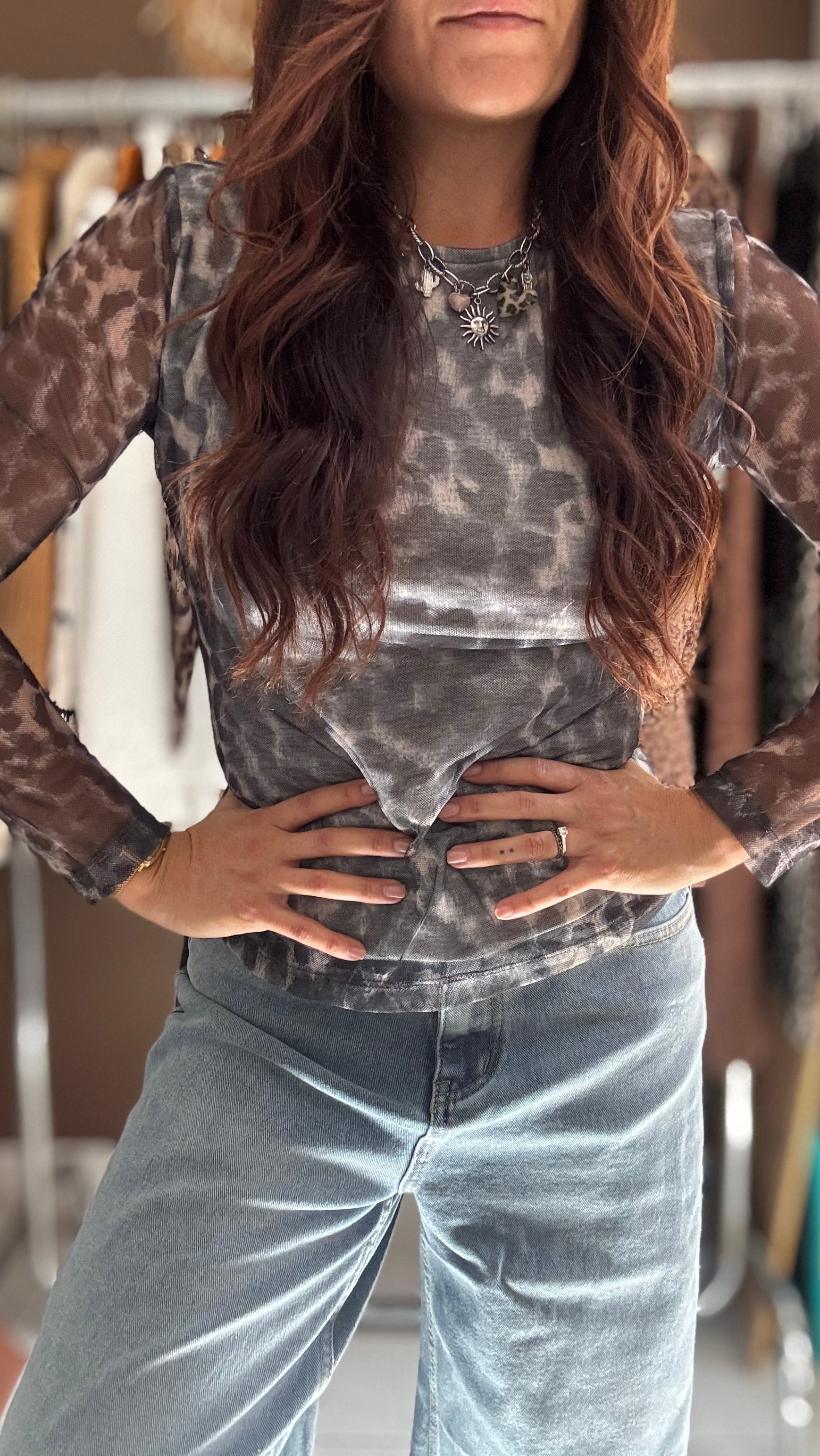 On adore ce top effet résille imprimé léopard - une pièce tendance et audacieuse, parfaite pour vos looks mi-saison
